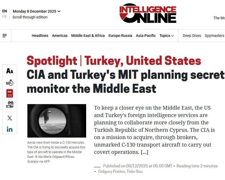 According to a report by the news website Intelligence Online (8/12/25), the CIA and the Turkish intelligence service MİT are planning to create a secret airbase in the occupied areas. This facility would be used for surveillance of the Middle East.