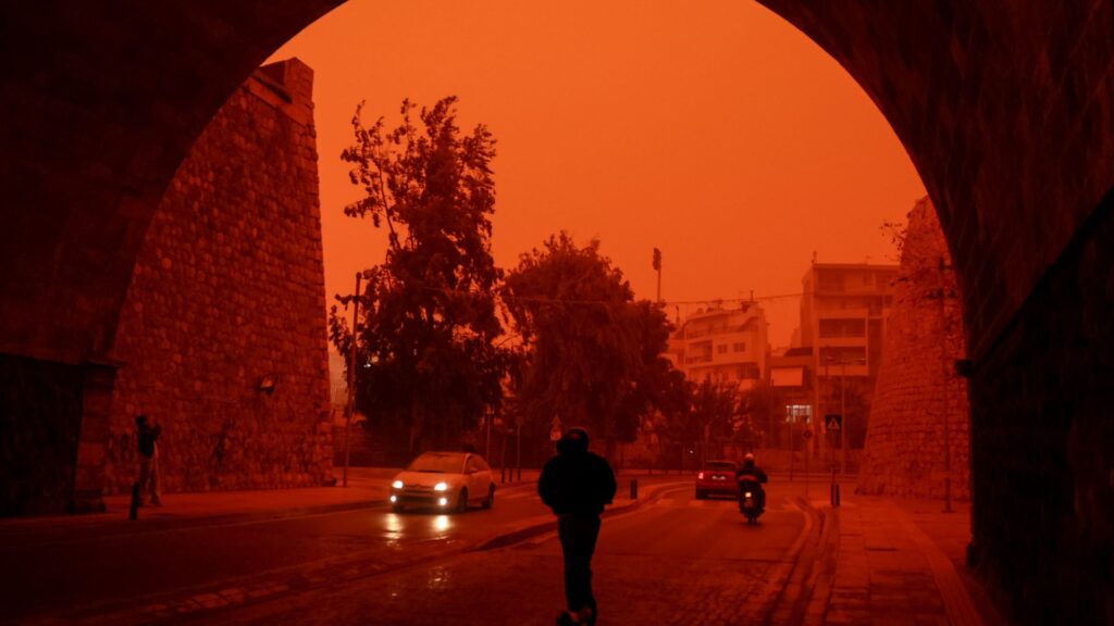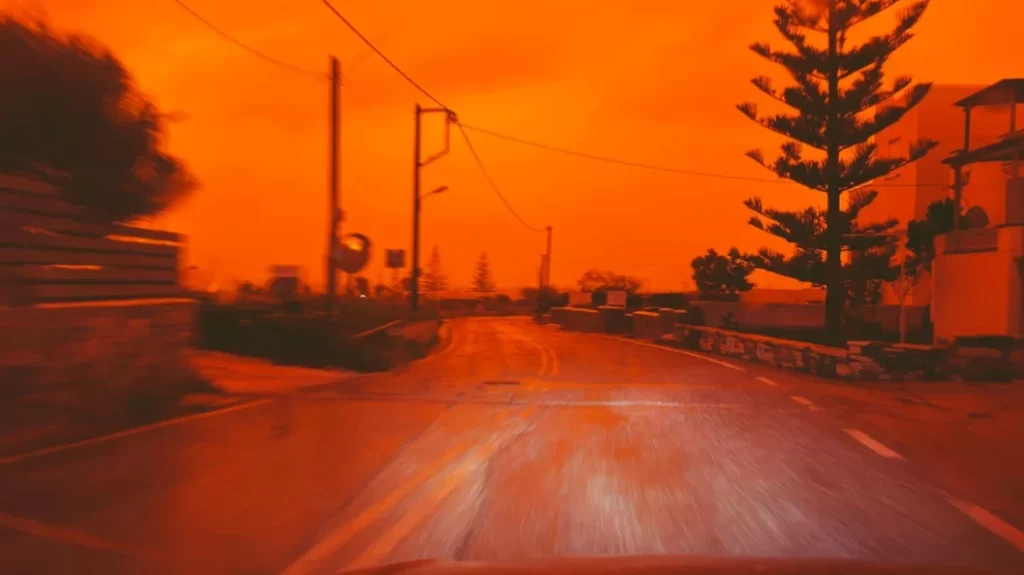 Since Wednesday morning (April 1), African dust has covered nearly the entire island of Crete, creating an almost lunar landscape with vivid orange skies. The dust has significantly worsened air quality and reduced visibility across the region.