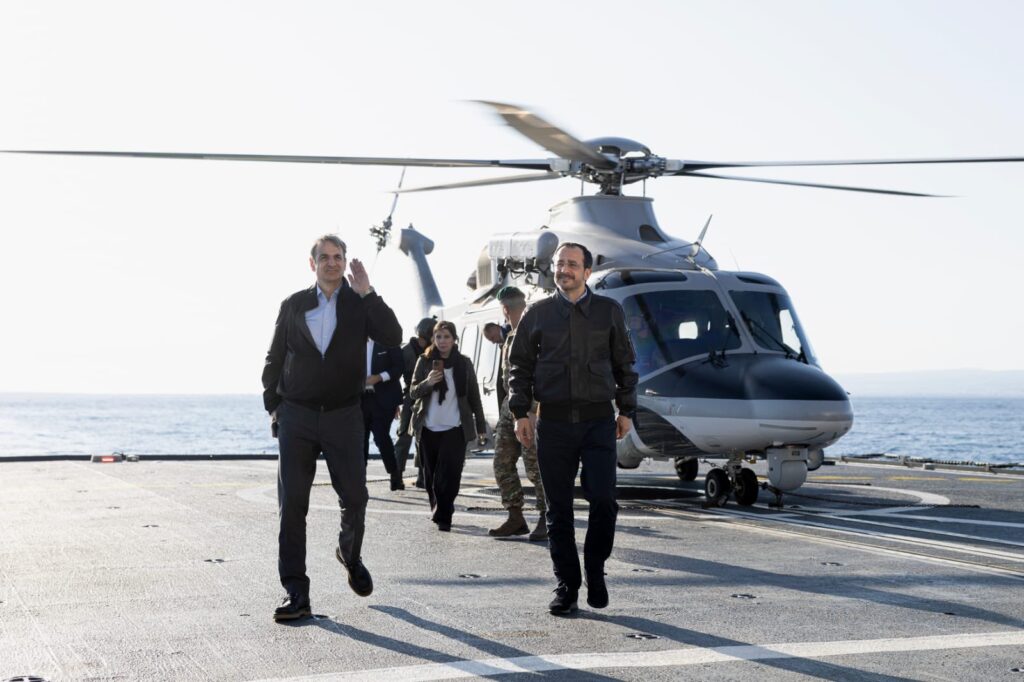 Macron visited the “Andreas Papandreou” air base where he met President Nikos Christodoulides and Greek Prime Minister Kyriakos Mitsotakis, before travelling to Souda and the aircraft carrier Charles de Gaulle, which is expected in the Eastern Mediterranean.