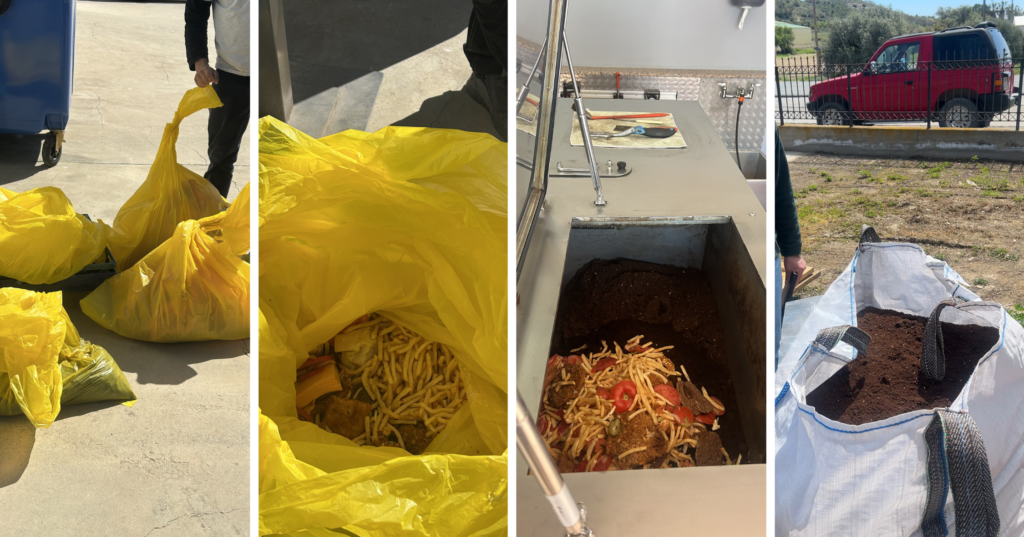 The unit we observed focuses on on-site management of organic waste, meaning food waste that would otherwise end up in the trash. Such solutions are particularly valuable in Cyprus today, as neither of the Integrated Waste Management Facilities (Kosi and Pentakomo) currently produces compost, nor is there a system for separate collection of organic waste across the country.