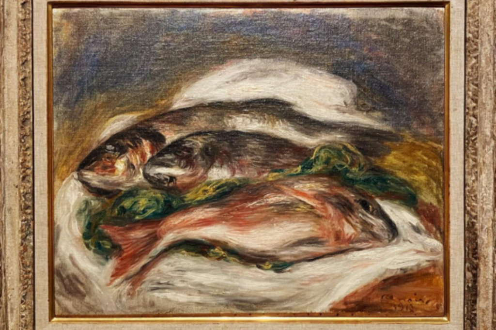 Renoir was one of the leading painters in the Impressionist movement, and completed the oil-on-canvas Les Poissons around 1917.