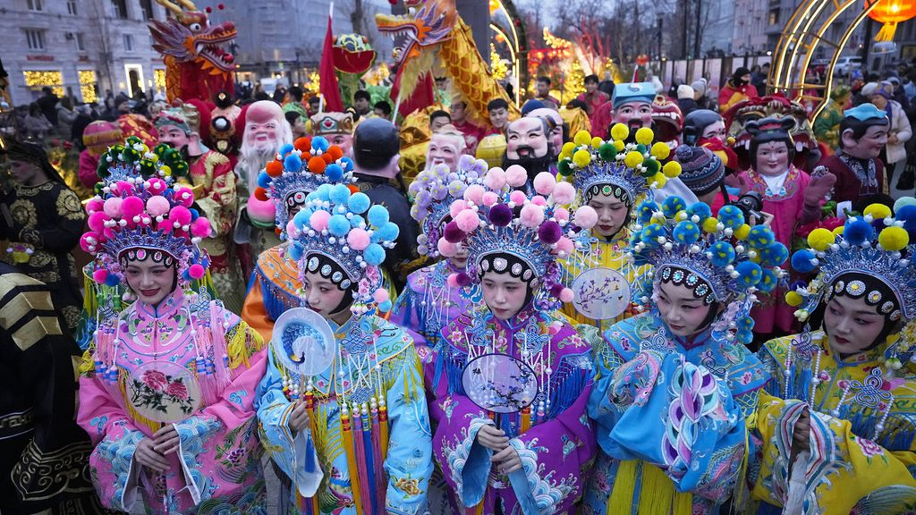In Moscow, visitors tasted Chinese foods from market stalls and walked through snowy streets decorated with red lanterns and dragon themed ornaments as the city began a two week celebration. In Argentina, thousands assembled in Buenos Aires Chinatown, enjoying dragon and lion dances on the main stage along with martial arts performances.