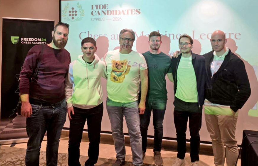 On 5 April, former world champion Viswanathan Anand held a training session with the Cyprus national team. Seven-time national champion Konstantinos Michaelides, the champions of the last two years, Alexandros Isaakidis and Rafail Antoniou, as well as Konstantinos Konstantinidis, Savvas Konstantinides and Samuel Johannes Constantinou, were briefed by the First Vice-President of FIDE on elements of strategy, psychology and how to approach decisive moments in the game.