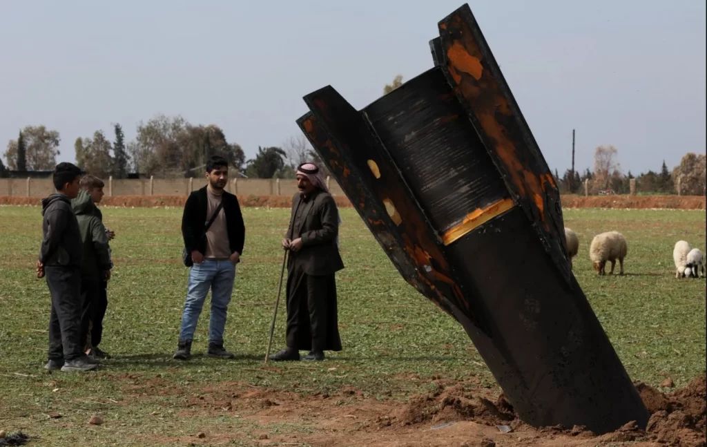 An Iranian ballistic missile landed in a field in Dimhiyye al-Kabira village in Syria’s Hasakah province near the Turkish border. The unexploded projectile remained lodged in the ground as residents gathered around it. Local reports indicated no casualties or injuries pic.twitter.com/OU0ZsmdaOC