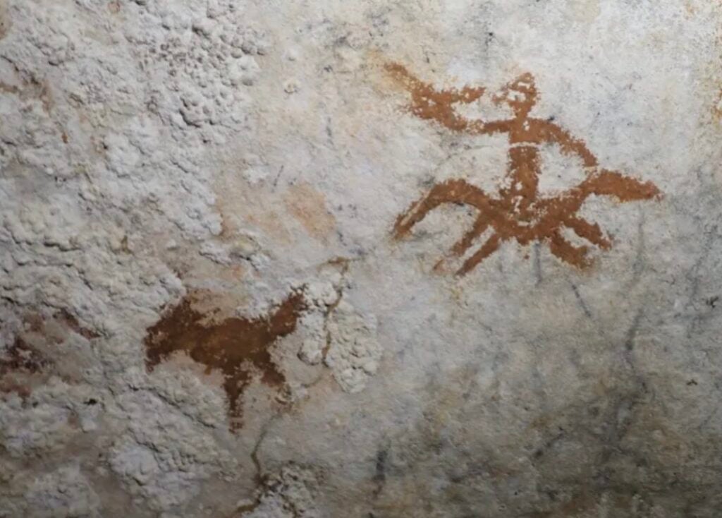 According to the Jakarta Post, archaeologist Adhi Agus Oktaviana from Indonesia’s National Research and Innovation Agency (BRIN) has been searching for hand stencils in the Muna island region, in Sulawesi province, since 2015. Adhi found the hand stencils, which have now been dated, beneath more recent paintings in the cave depicting a person riding a horse alongside a chicken.